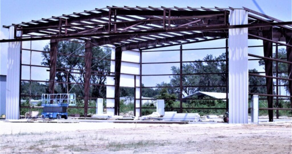 - Proposed hangar size: approx. 100’ × 109’ × 33’ (≈11,990 SF) with 100’ × 28’ swing door.